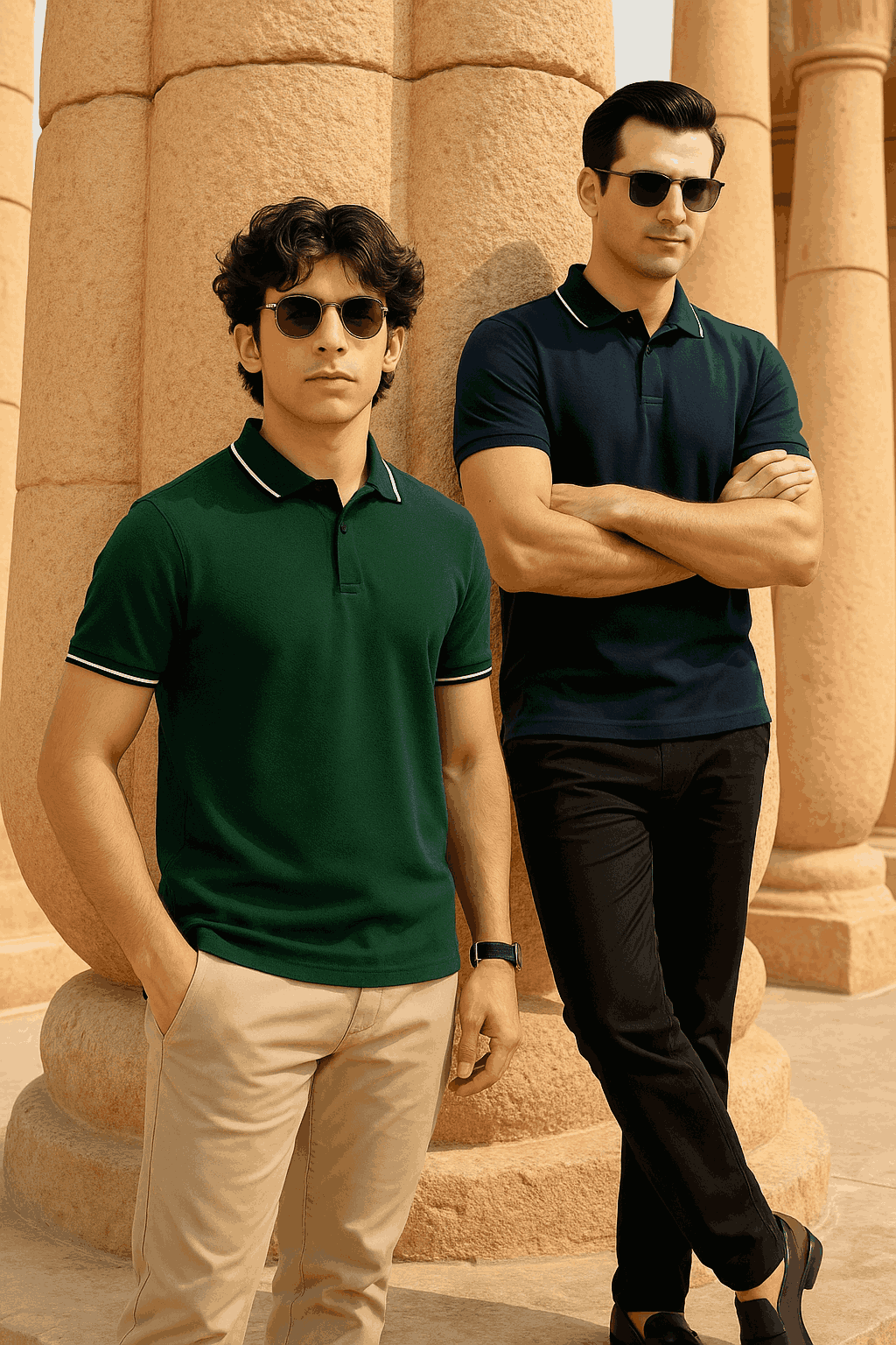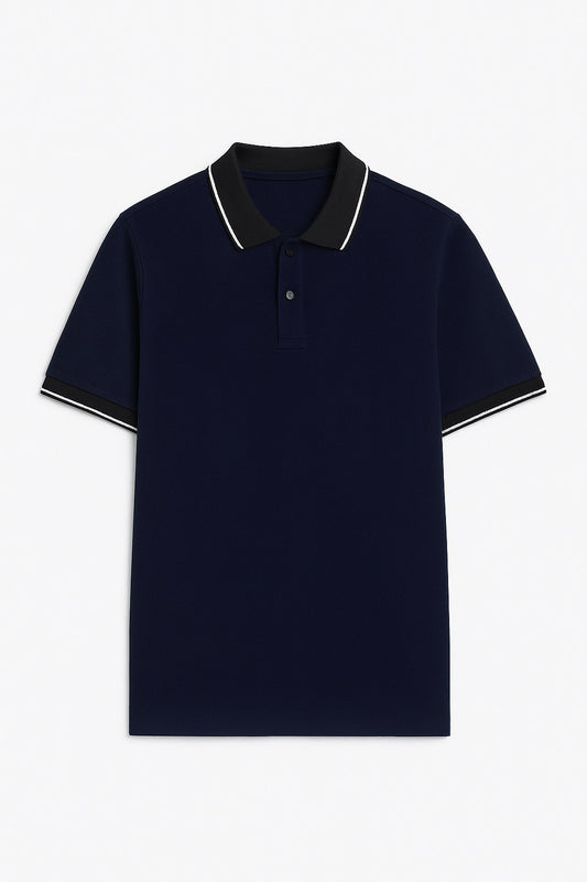 Premium Tipped Collar Polo Shirt – Navy Blue