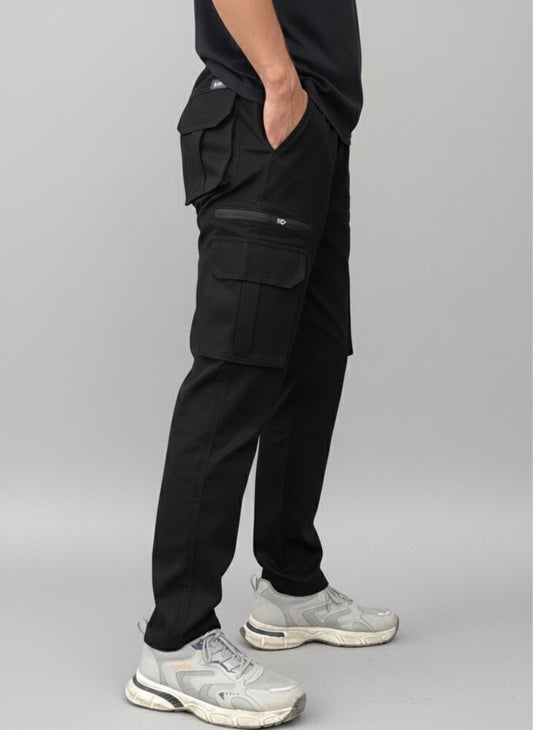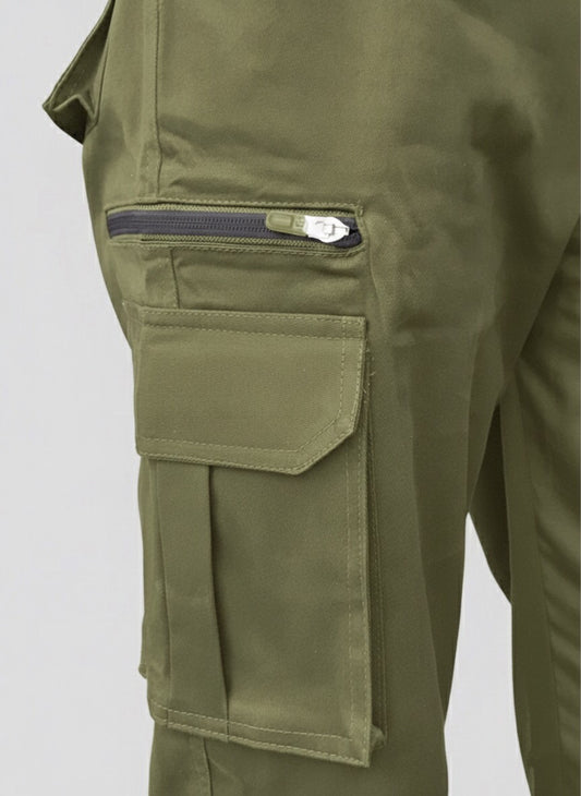 8 Pockets Cargo Pants with Elastic Waist & Zip Pocket